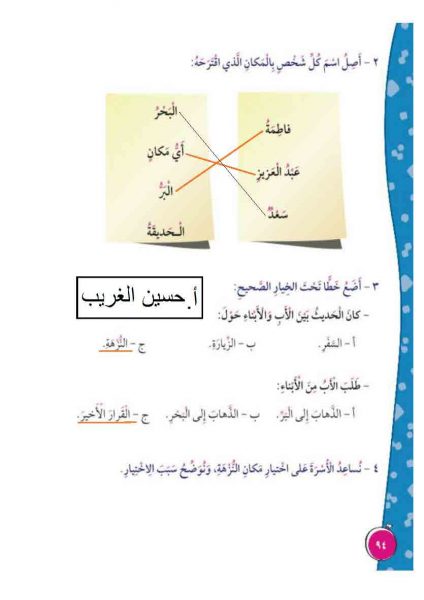 حل الوحدة 3 لغة عربية للصف الثاني اعداد حسين الغريب
