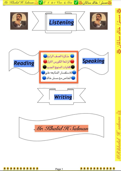 مذكرة لغة انجليزية الوحدة الأولى للصف الرابع اعداد خالد سلمان 2018-2019