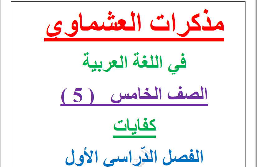 مذكرات العشماوي لغة عربية الصف الخامس الفصل الأول