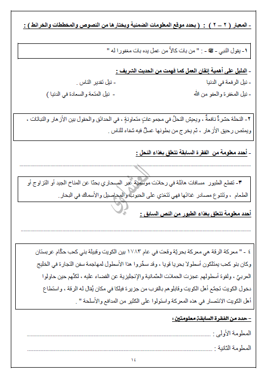 ( المعيار 2-2 : يحدد موقع المعلومات الضمنية ويختارها من النصوص والمخططات والخرائط )