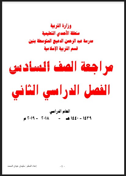 - اسم الملف : مراجعة تربية إسلامية للصف السادس الفصل الثاني مدرسة عبد الرحمن الدعيج المتوسطة 2018-2019