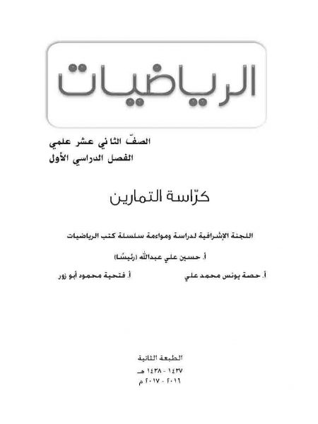 كراسة التمارين رياضيات ثاني عشر علمي فصل اول