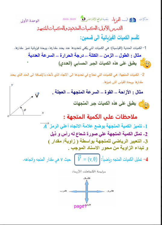 الدرس الأول: الكميات العددية والكميات المتجهة