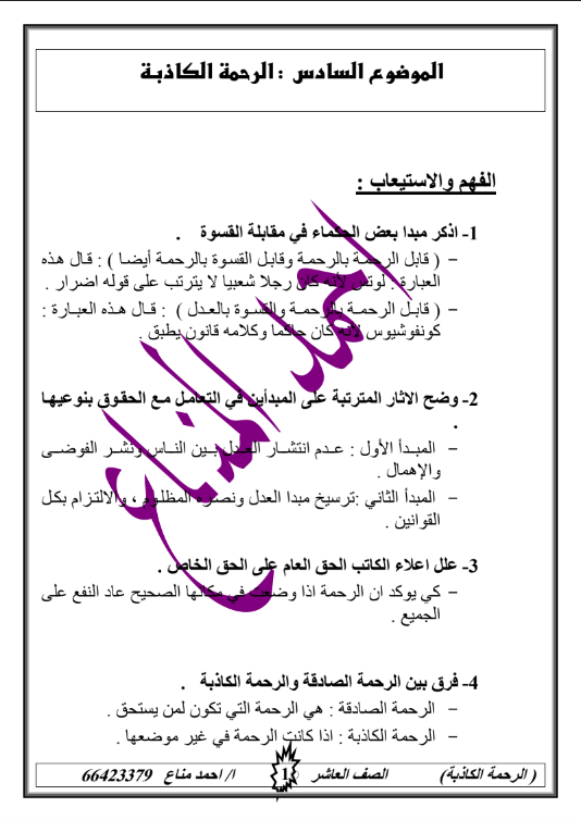 هذا مقتطف من شرح الرحمة الكاذبة عربي صف حادي عشر فصل اول موقع مدرستي الكويتية