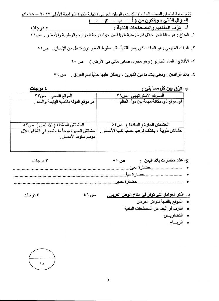 صور نموذج اجابة اجتماعيات للصف السابع :