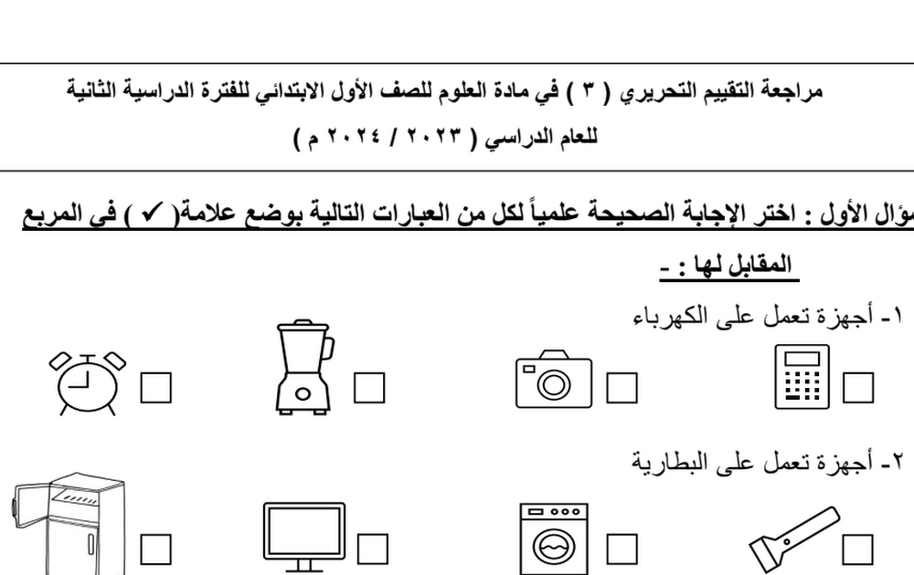 مراجعة الاختبار الثالث علوم الصف الأول الفصل الثاني 2023/2024