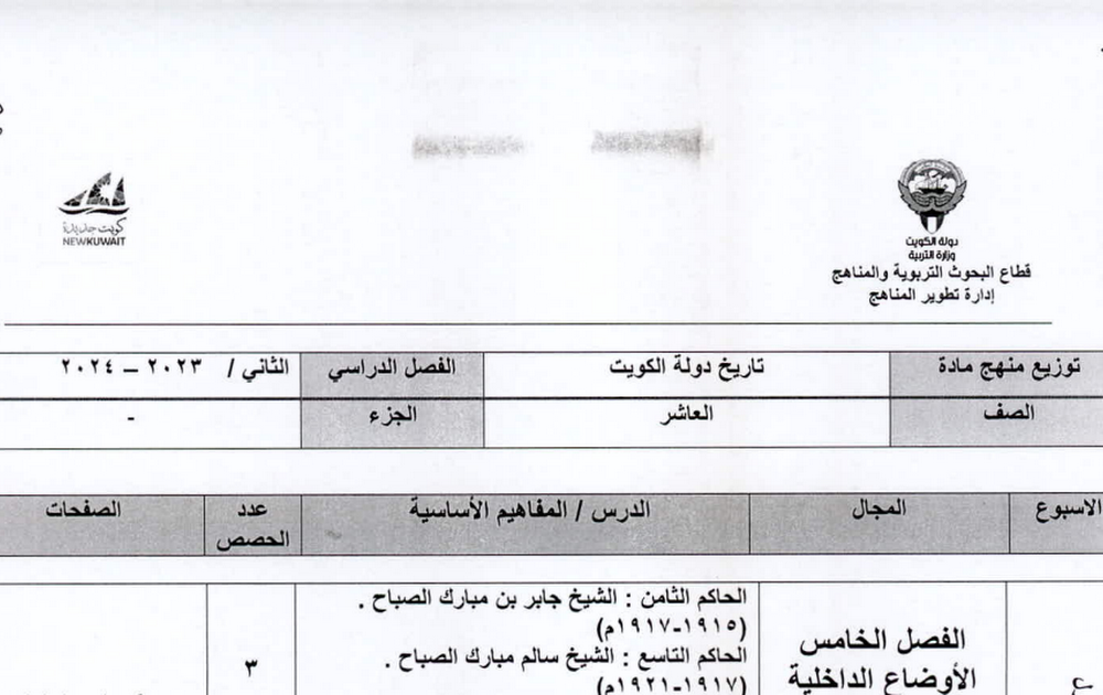 توزيع منهج الاجتماعيات الصف العاشر الفصل الثاني 2023/2024