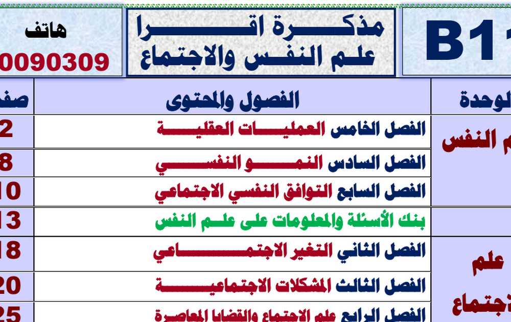 مذكرة علم النفس و الاجتماع الصف الحادي عشر أدبي الفصل الثاني – اقرأ