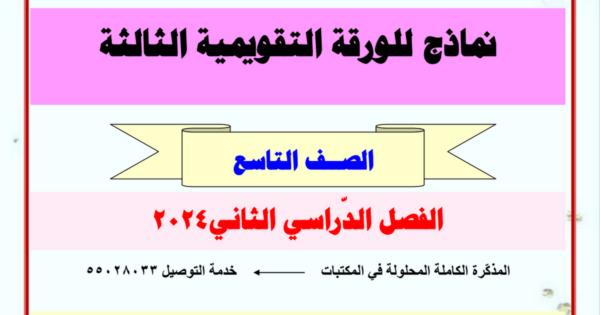 إجابة الاختبارات التجريبية النهائية اللغة العربية الصف التاسع الفصل الثاني 2023-2024 أ إيمان علي