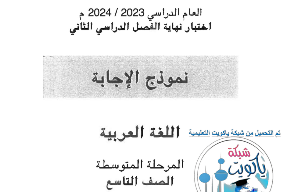 نموذج إجابة امتحان لغة عربية الصف التاسع الفصل الثاني 2023-2024 – الفروانية