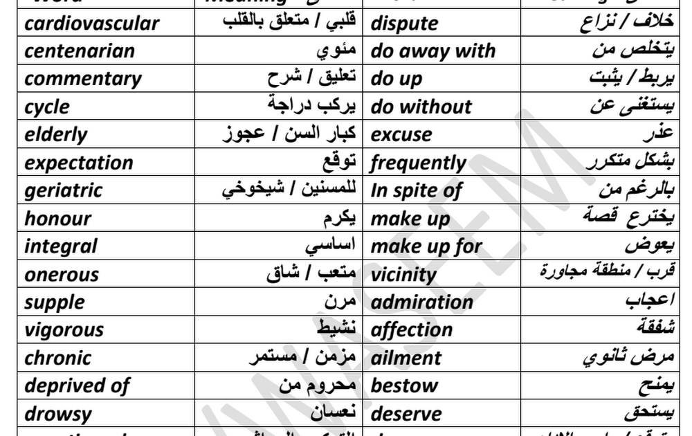 معاني كلمات لغة انكليزية الصف الثاني عشر أدبي الفصل الثاني أ وسيم جلال