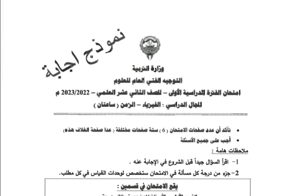 نموذج اجابة امتحان فيزياء الصف الثاني عشر الفصل الثاني 2022/2023