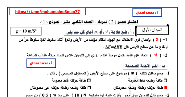 مراجعة فيزياء الصف الثاني عشر الفصل الثاني أ محمد عاطف
