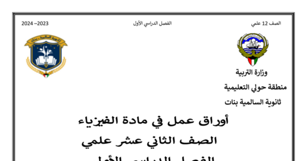 نموذج اجابة بنك أسئلة فيزياء الصف الثاني عشر علمي الفصل الثاني 2023/2024