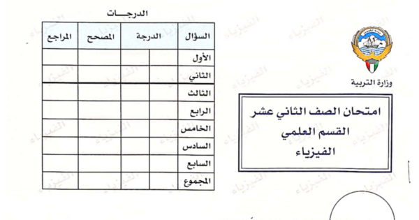 امتحان فيزياء الصف الثاني عشر علمي الفصل الثاني 2023-2024