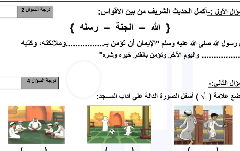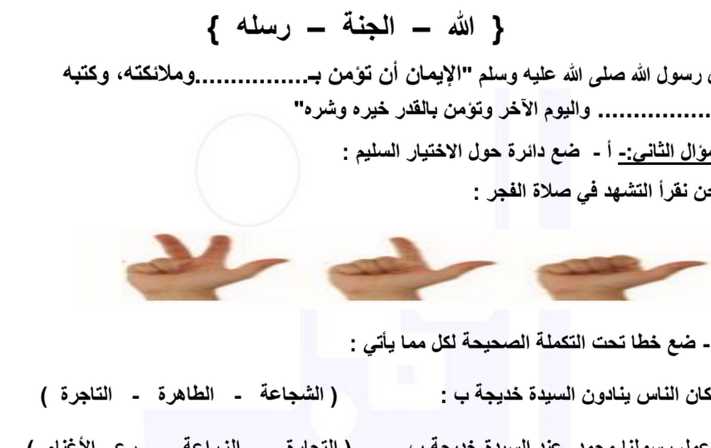 ورقة عمل تجريبية (2) تربية إسلامية الصف الثاني الفصل الثاني 2023/2024
