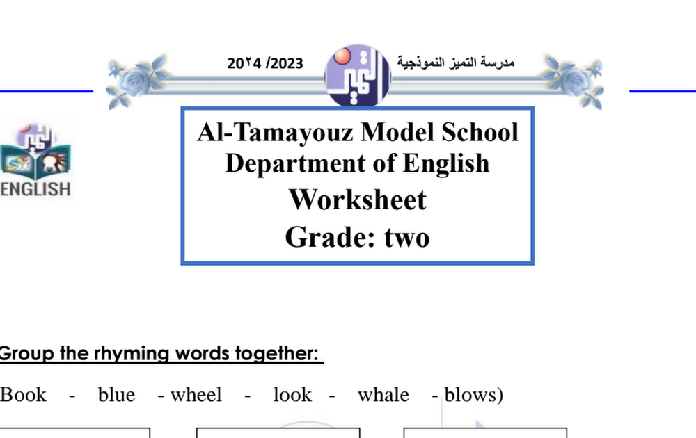 أوراق عمل لغة انكليزية الصف الثاني الفصل الثاني 2023/2024