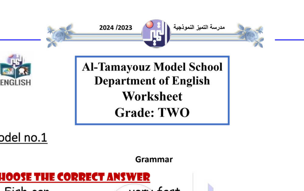 نموذج اجابة بنك أسئلة لغة انكليزية الصف الثاني الفصل الثاني 2023/2024 – التعليم الخاص