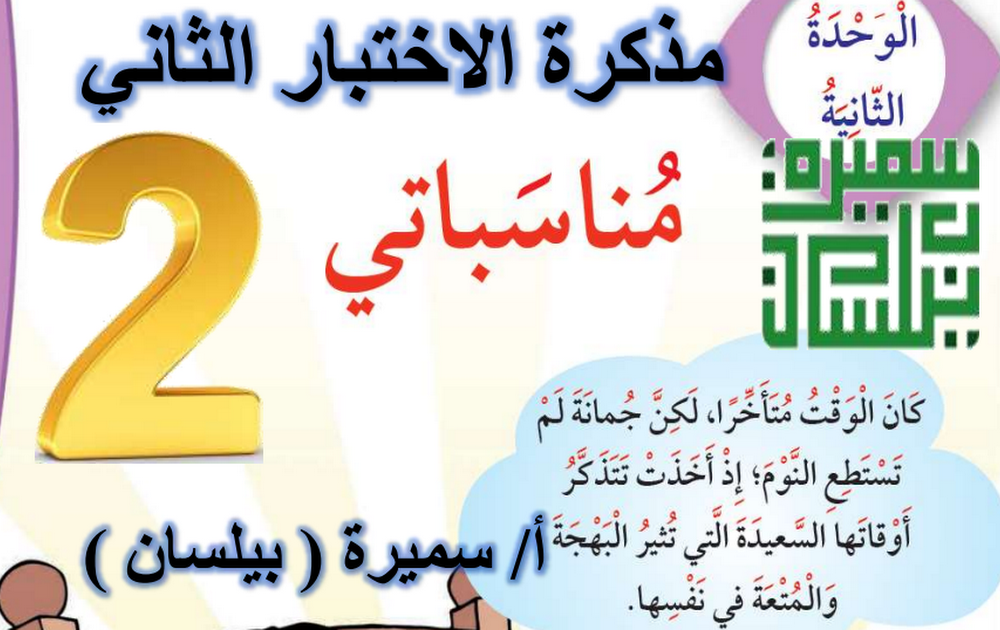 مذكرة الاختبار التحصيلي الثاني لغة عربية الصف الثاني الفصل الثاني أ سميرة بيلسان