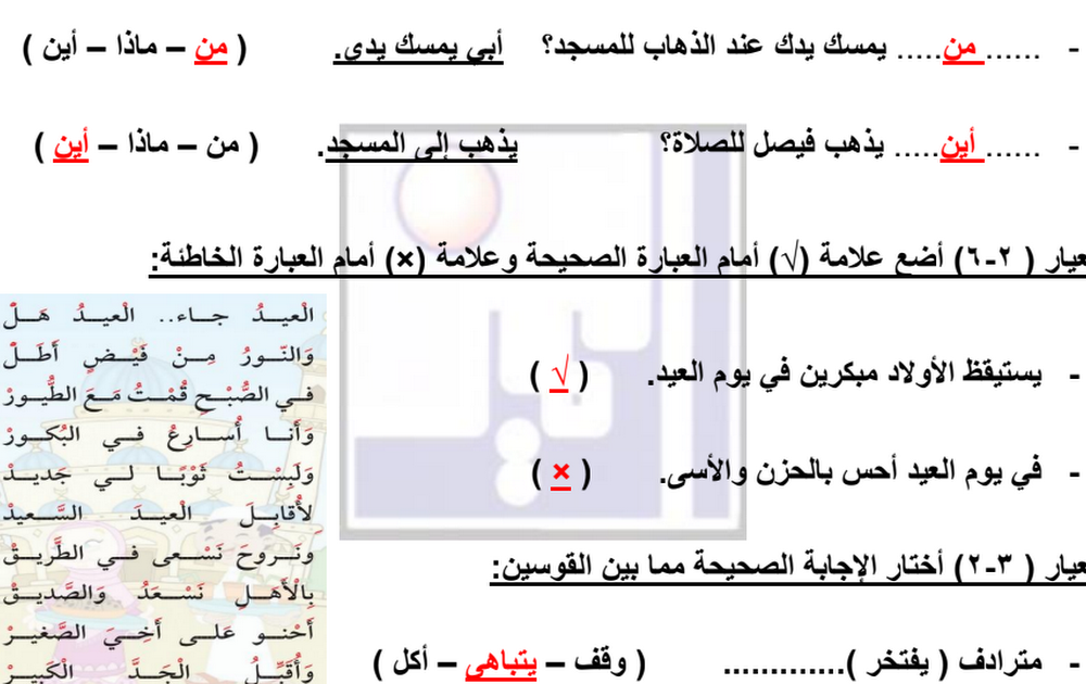 نموذج الاختبار التجريبي الثاني (1) لغة عربية الصف الثاني الفصل الثاني 2023/2024
