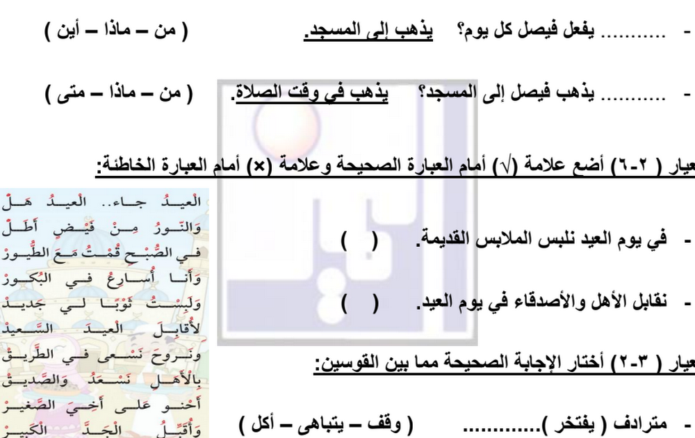 نموذج الاختبار التحصيلي الثالث لغة عربية الصف الثاني الفصل الثاني 2023/2024 أ حسين الغريب