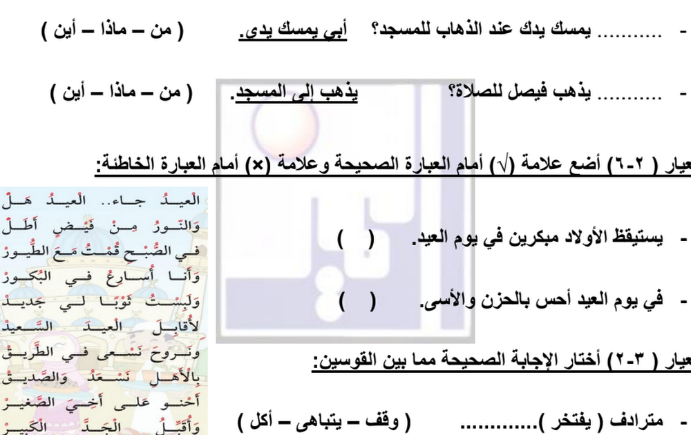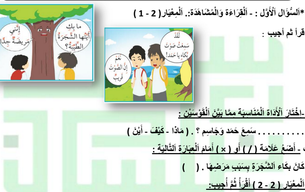 واجبات الأسبوع 9+10 لغة عربية الصف الثاني الفصل الثاني أ سميرة بيلسان