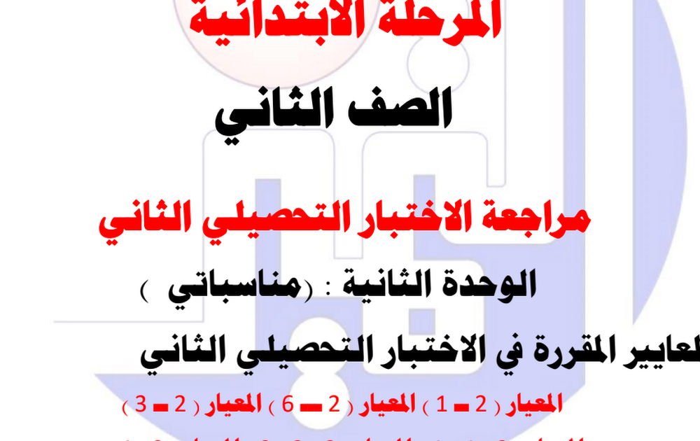 مراجعة الاختبار التحصيلي الثاني لغة عربية الصف الثاني الفصل الثاني 2023/2024