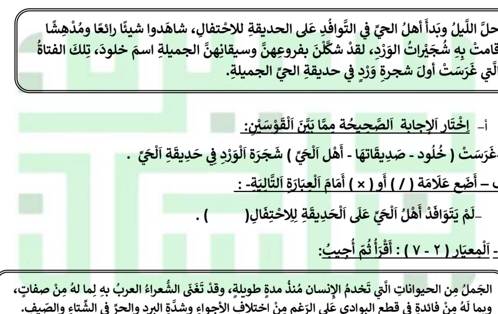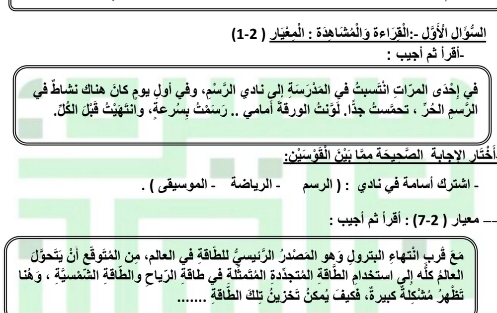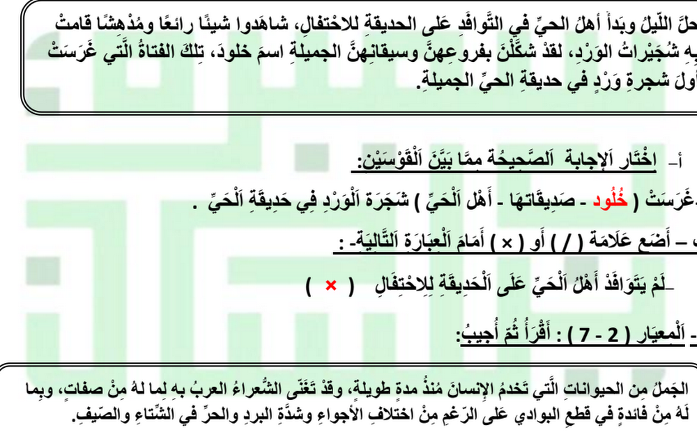مذكرة الاختبار الأول لغة عربية الصف الرابع الفصل الثاني أ سميرة بيلسان