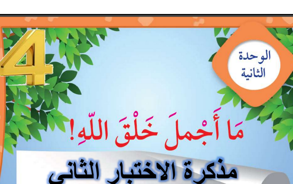 مذكرة الاختبار التحصيلي الثاني لغة عربية الصف الرابع الفصل الثاني أ سميرة بيلسان