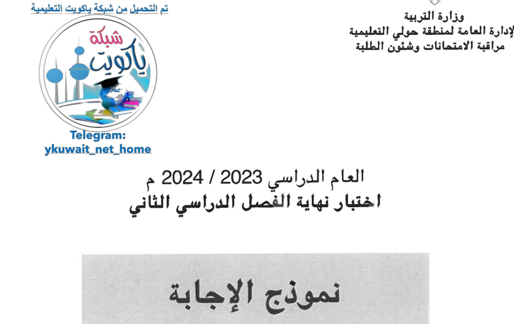 نموذج إجابة امتحان لغة عربية الصف السابع الفصل الثاني 2023-2024 – حولي