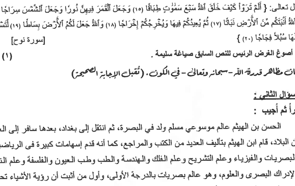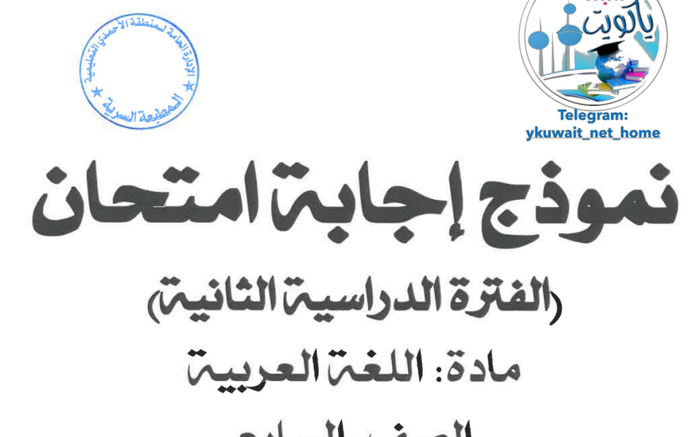 نموذج إجابة امتحان لغة عربية الصف السابع الفصل الثاني 2023-2024 – الجهراء