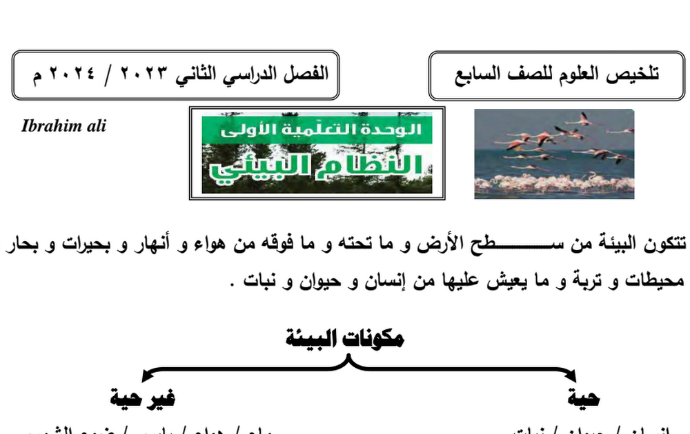 ملخص علوم الصف السابع الفصل الثاني 2023/2024 أ ابراهيم علي