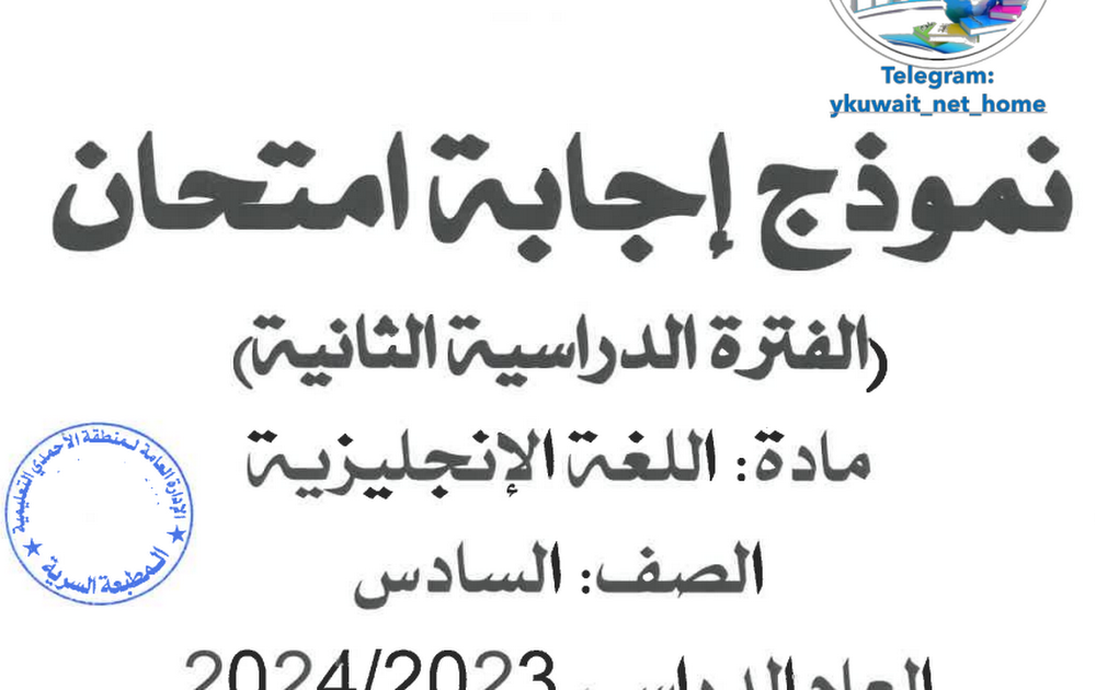 نموذج إجابة امتحان لغة انجليزية الصف السادس الفصل الثاني 2023-2024 – الجهراء