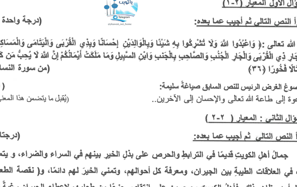 نموذج اجابة امتحان نهائي لغة عربية الصف السادس الفصل الثاني 2023/2024 – الجهراء