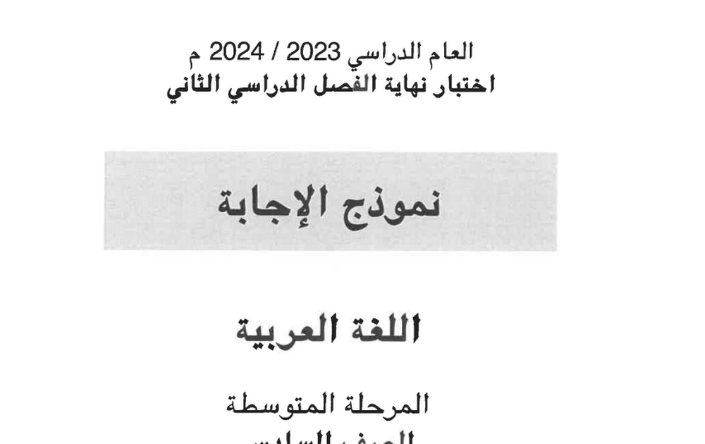 نموذج إجابة امتحان لغة عربية الصف السادس الفصل الثاني 2023-2024 – التعليم الخاص