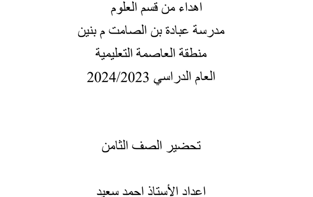تحضير علوم الصف الثامن الفصل الأول 2023-2024 أ أحمد سعيد