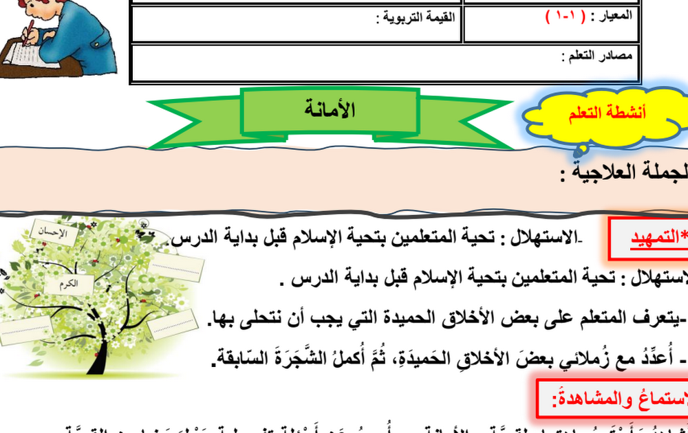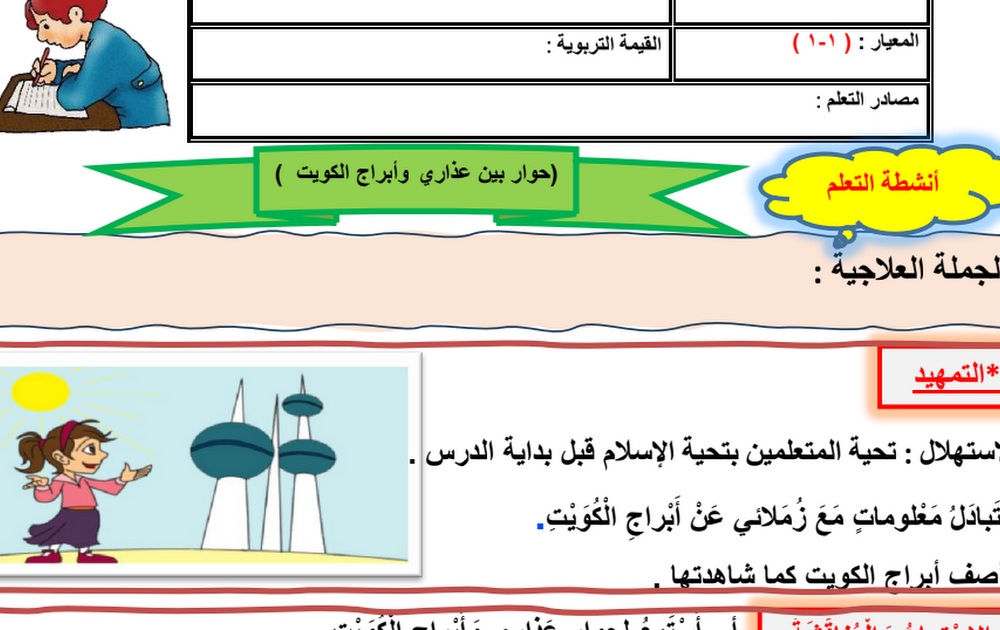 التحضير الكتابي للأسبوع الأول لغة عربية الصف الخامس الفصل الأول أ سميرة بيلسان
